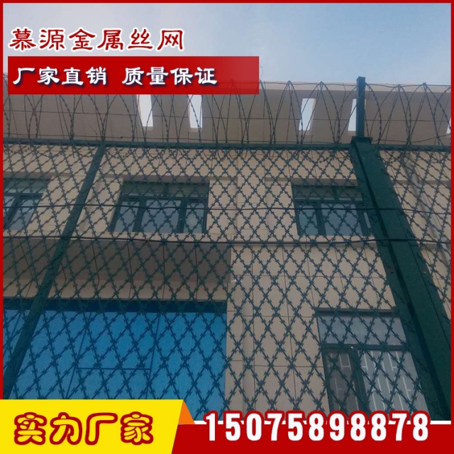 看守所物理隔離網規格參數|監獄物理隔離網|監獄鋼網墻 監獄警戒隔離鋼網墻(監獄隔離防爬網)的特點:具有防腐、防老化、*曬、*候等特點。螺旋型交叉刀片刺網是在兩條刀片刺網之間以不銹鋼片和鍍鋅鋼片強力夾扣,展開后即呈交叉狀,美觀又實用。具有防攀爬、*沖擊、*剪切特性和良好的震懾作用,有多種架設方式可供選擇,施工迅速,既省經費,又可達到嚇阻的效果。專用于監獄看守所、警戒線軍事基地等高安全領域 監獄編織隔離網,看守所編織隔離網,在押犯編織隔離網優點:監獄防攀爬隔離網,監獄隔離網,監獄網圍墻具有結構新穎、堅固緊密、網面平整、網孔均勻、刀鋒銳利、防攀爬、*腐蝕性強等特點。建設于監獄的內外墻地面及高墻之上,網墻內側或頂部加裝蛇腹形刀刺網,形成一道高不可攀、難以逾越的隔離障礙。