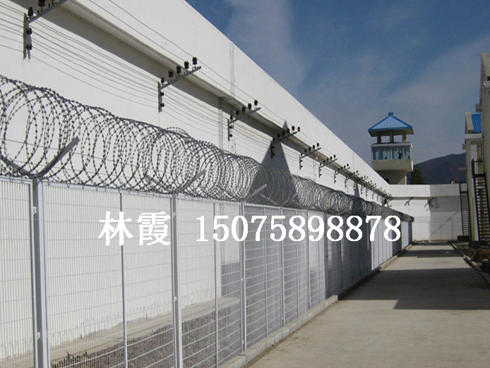 監獄護欄網是現在看守所、監獄、武警中隊比較熱衷的產品。監獄護欄網是一種新型防護網,這種新型刀刺護欄網由蛇腹式刀刺網和焊接刀片刺網網片或有鋼絲焊接的網片組成。監獄鋼網墻的特點:一:焊接的刀片刺網網片菱形狀刺網,至于上下螺旋刀片刺網的中間部分,形成的網片是20CM *15CM 孔的刺網片,高度上具有防攀爬,*沖擊,高安全防護特性特性,刀片刺網和蛇腹網結合使用,使人望而卻步,擊破人的僥幸心理。刀刺網生產工藝:刀片刺網由銳利尖角鍍鋅鋼板或不銹鋼薄板做刀片,鋼絲做芯線組合而成的新型防護產品。鋼網墻表面處理:先鍍鋅,在PVC浸塑.顏色自選,亮麗大方.二:蛇腹式刀刺網材料有中碳鋼絲、冷軋鍍鋅薄板,不銹鋼板,不銹鋼絲。蛇腹型刀片刺網,上、下懸掛0.5米的交叉蛇腹型刀片刺網,刀片刺網采用鋼板沖壓成型包附于鋼絲(筋絲)之上,由銳利尖角鋅鋼板或不銹鋼薄板做刀片,高張力鋼絲做芯線組合而成的。鋒利的刀型刺由雙線扣裝后成蛇腹狀既美觀又讓人不寒而粟。起到了很好的阻嚇作用。刀片刺網硬度好,制造及特點:鋼絲為芯絲,將沖壓好的刀片包裹在芯絲上,一次制成。產品具有極強的防護能力和*的恐嚇能力,安裝方便,壽命長。三:鋼絲焊接的網片采用低碳鋼絲焊接而成,表面采用pvc浸塑處理,與刀刺網連接。四:安裝刀刺網的立柱采用6CM*6CM方管,壁厚在2-2.5MM,高2.4米,底部2米圍直線,上部0.4米向內折30度成斜線,立柱間隔為3米;橫梁采用4CM*2CM長方鋼,長3米為一個單位:立柱和橫梁表面涂黑綠色(注塑工藝),橫梁和立柱配有連接件。監獄護欄網用途:我公司產品已廣泛用于軍事重地、監獄、政府機關、銀行;生活小區圍墻、私人住宅、別墅的圍墻、門窗、高速公路、鐵路護欄以及邊境線等防護保安 。