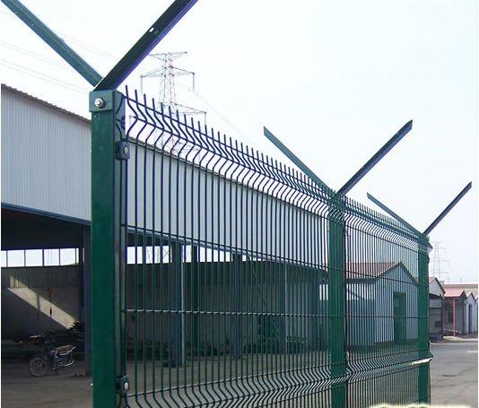 4、光伏網圍欄-Y型護欄網:絲徑4mm、孔徑5*10、5*20、網高1.8-2.2m、網寬3m、立柱6*6方管、60圓管、上方帶V型網片,在上面安裝刀片滾籠。如果您想選購的廠區護欄網要求防盜防攀爬、結實可靠的話,建議您用Y型護欄網,這種護欄網一般用做飛機場護欄網、監獄護欄網。樣式如下圖: